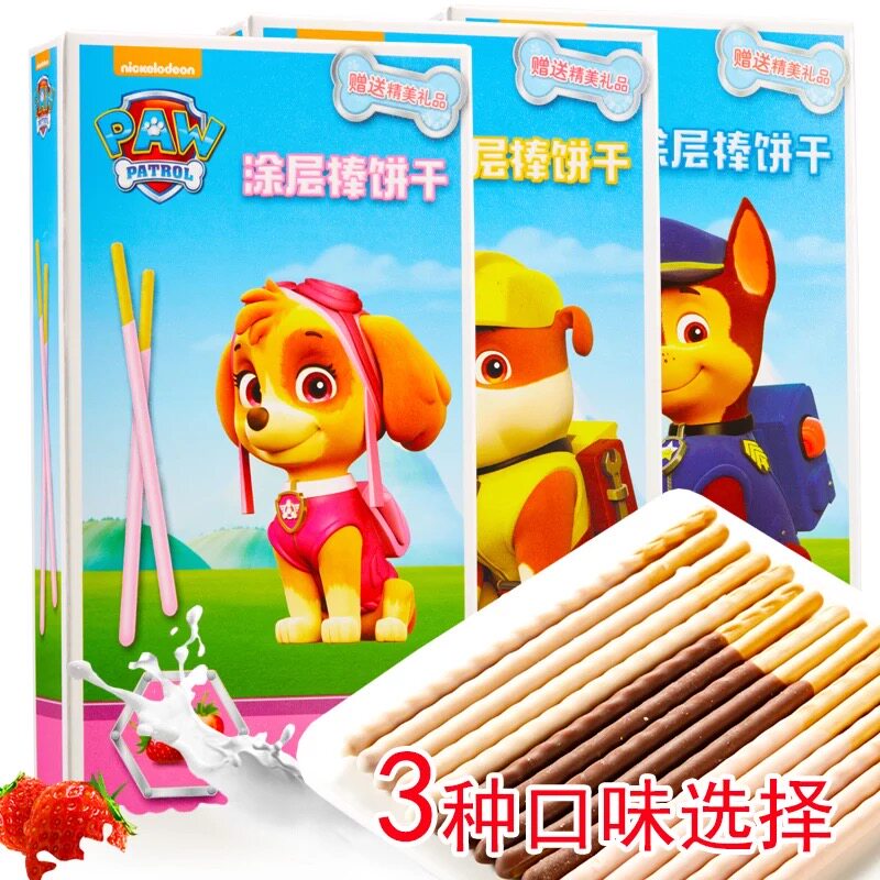 Puppy Wang Wang team made great efforts to coat biscuits strawberry milk chocolate snacks for children 40g