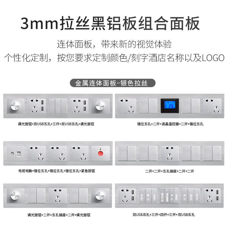 ATH Hotel bedside cabinet control switch panel 86 Guesthouse Room combination switch socket inscription customization