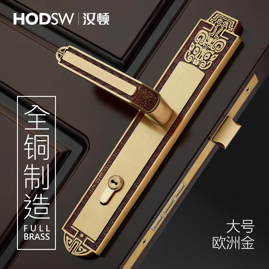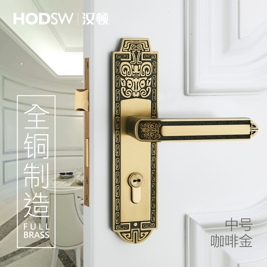 Handon full copper silent door lock full copper Chinese style indoor door lock universal room door lock full copper Chinese style real gold door lock