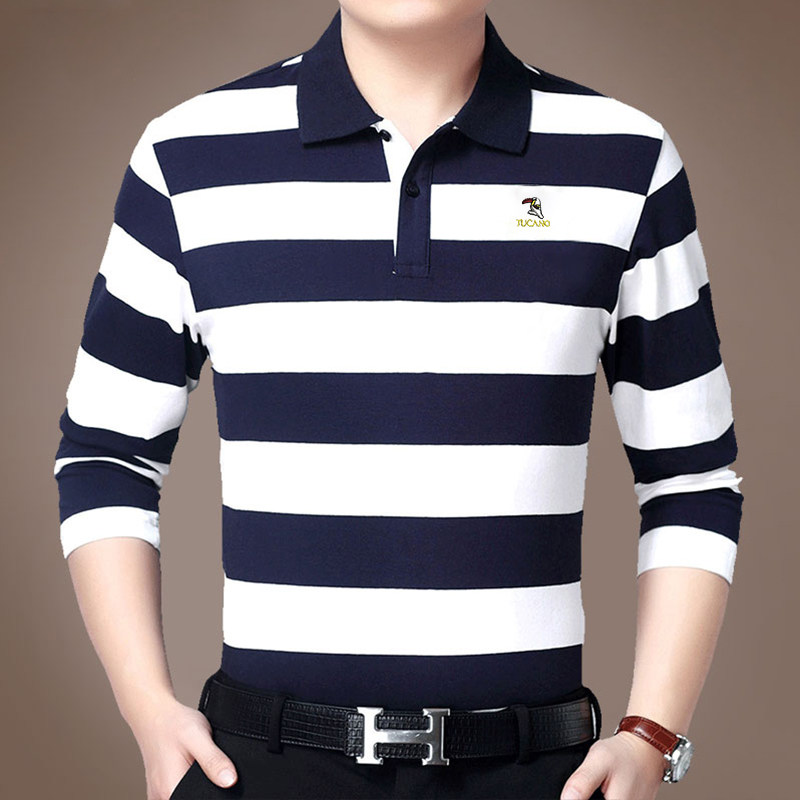 Woodpecker pure cotton dad long-sleeved T-shirt men's spring and autumn loose thin T-shirt middle-aged lapel POLO shirt autumn coat
