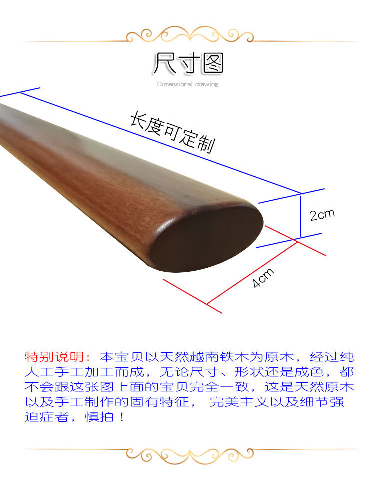 Vietnam Iron Wood Oval Stick Iron Pear Wood Fitness Stick Solid Wood Stick With Back Stick Riot Stick With Less Forest Werewolf Stick