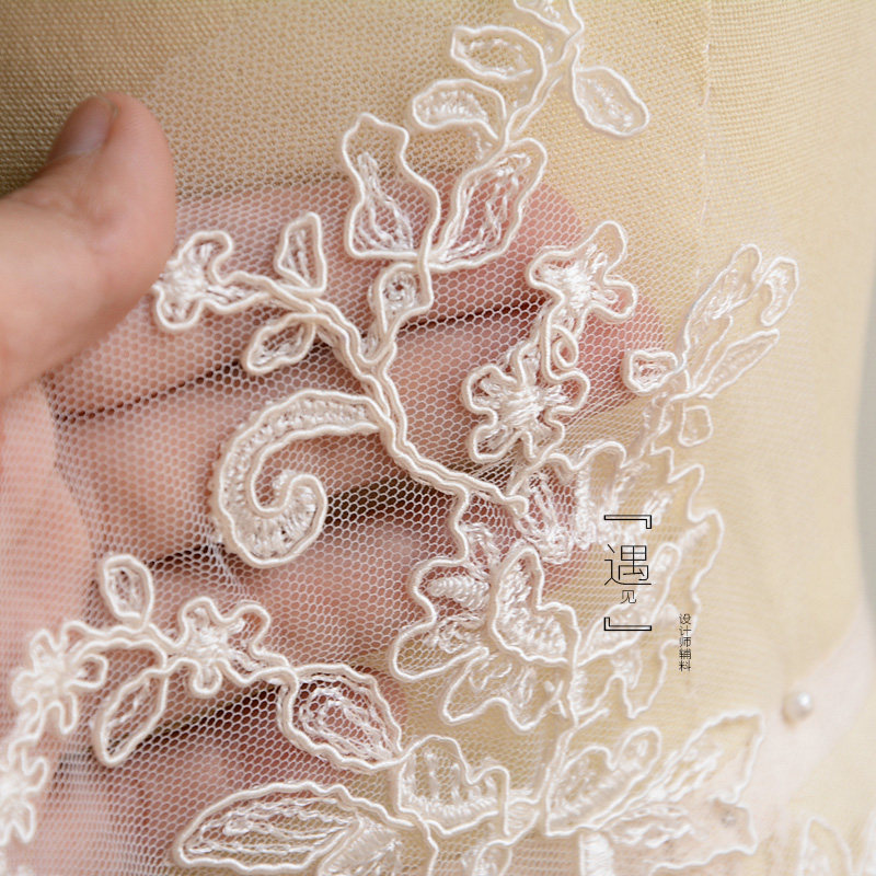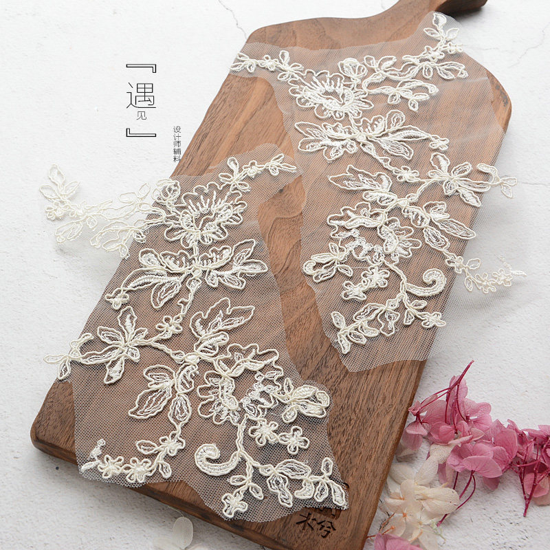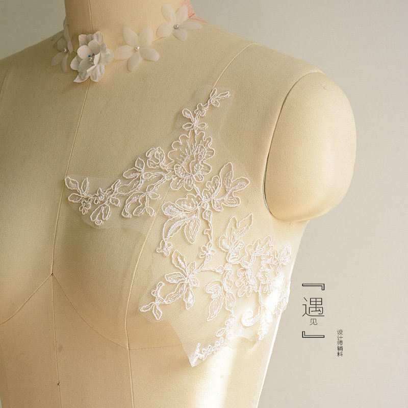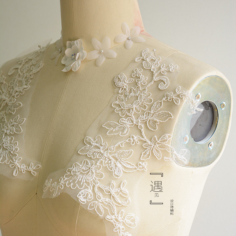 Upscale gown headwear with DIY lace accessories Che bony lace to flower wedding dress styling design lace material