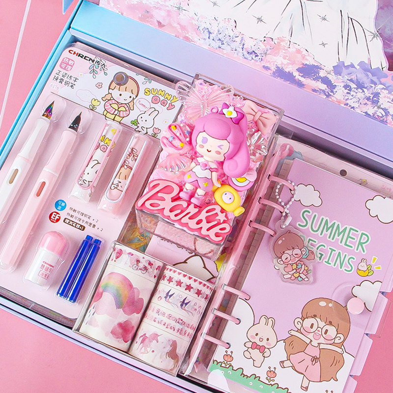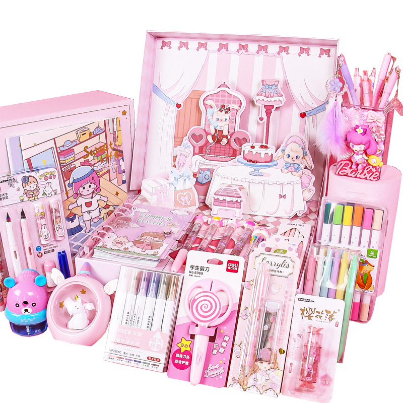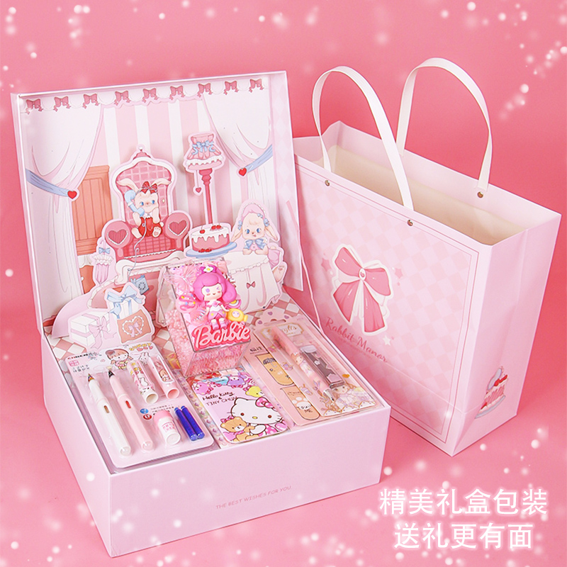Children's Day Girl's Heart Stationery Set Gift Box Girl's Birthday Gift Three-dimensional Handbook Primary School Gift Pack Practical School Supplies Stationery Gift Box