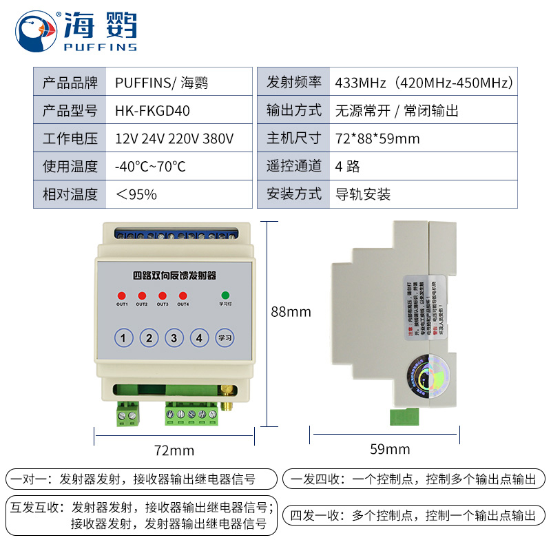 Puffin remote control switch 5000 meters two-way feedback fixed point-to-point wireless switch transmission intelligent control