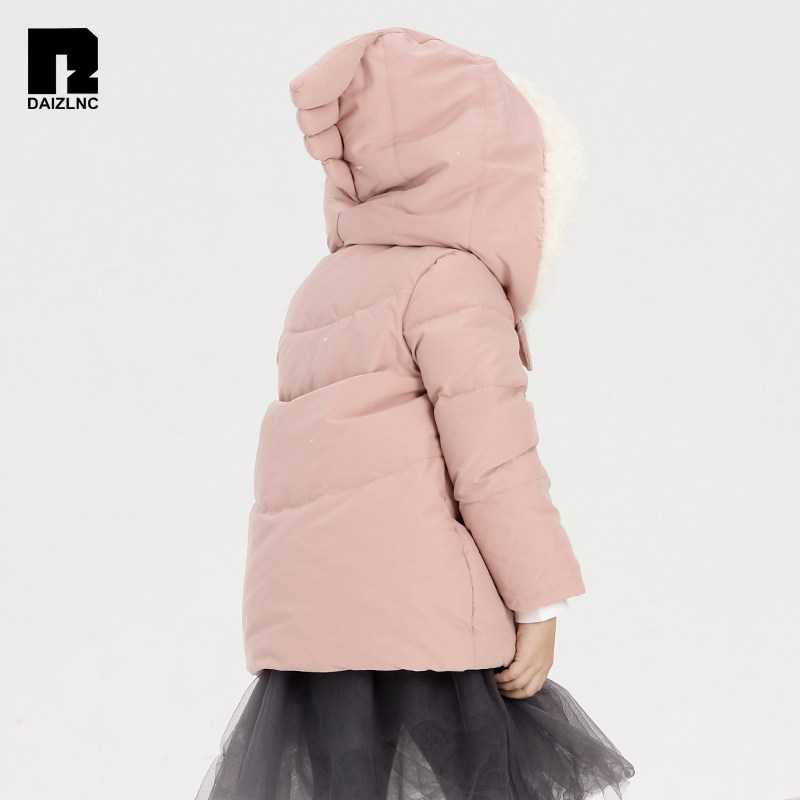 (Webster's)Dai Zi children's down coat Girls cute children's hooded medium and long version of duck down jacket