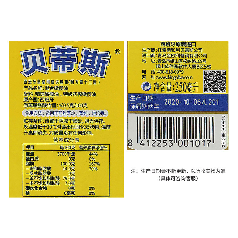 Betis Spain imported olive oil 250ml small bottle pure olive oil Cooking Oil Chinese cooking