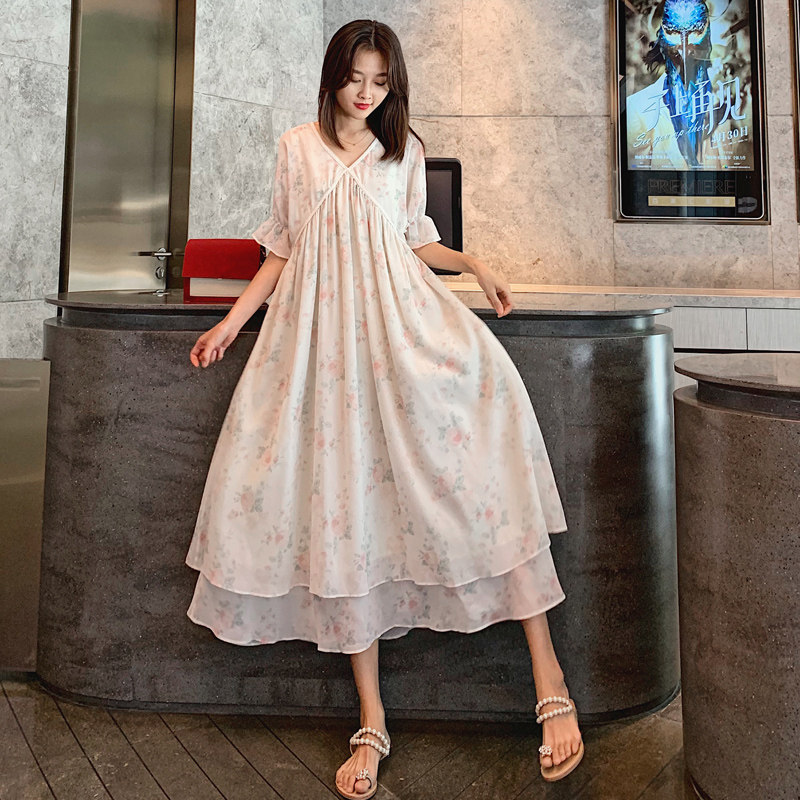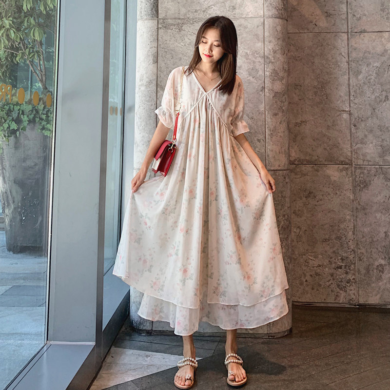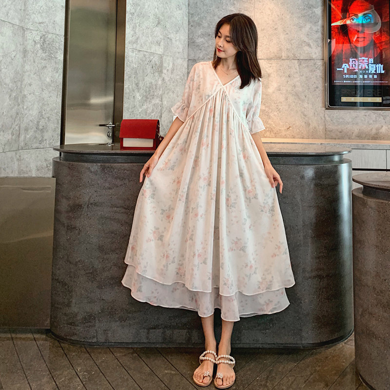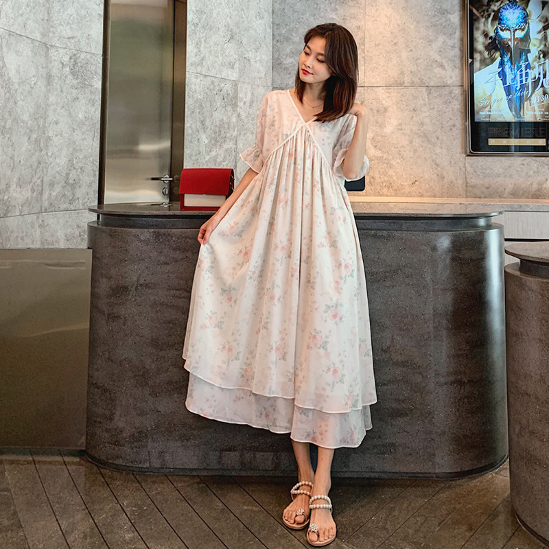 Maternity dress Summer long fairy loose fashion printing net red personality summer chiffon skirt mom tide