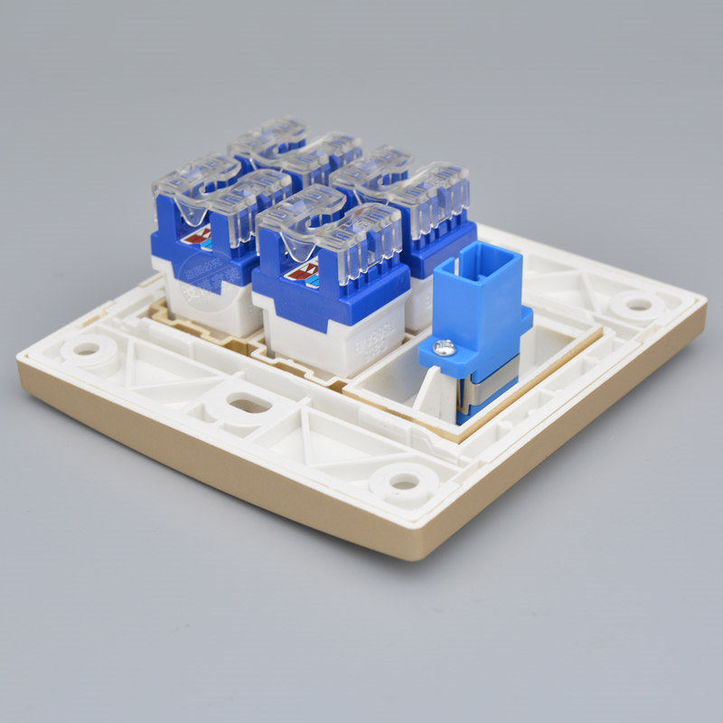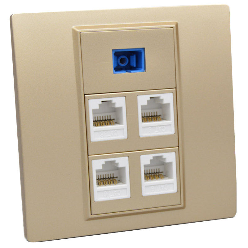 Four-port Gigabit cable fiber panel Type 86 Champagne color SC optical brazing four-digit CAT6 six-class network cable computer socket