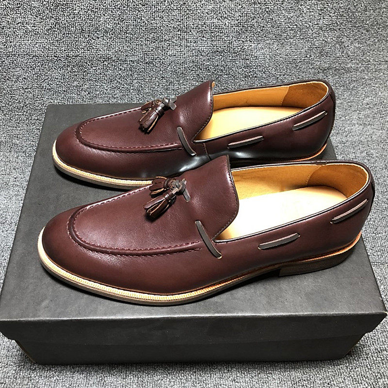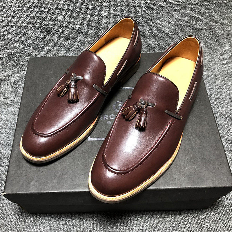 Inglerofoe Shoes Men Brief Genuine Genuine Leather Round Head Sloth a foot pedal Business Fashion Shoes Streaming Sushoes Man Tide Shoes