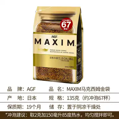 Japan AGF maxim instant coffee powder maxim gold bag incense black coffee sugar-free 135g bag