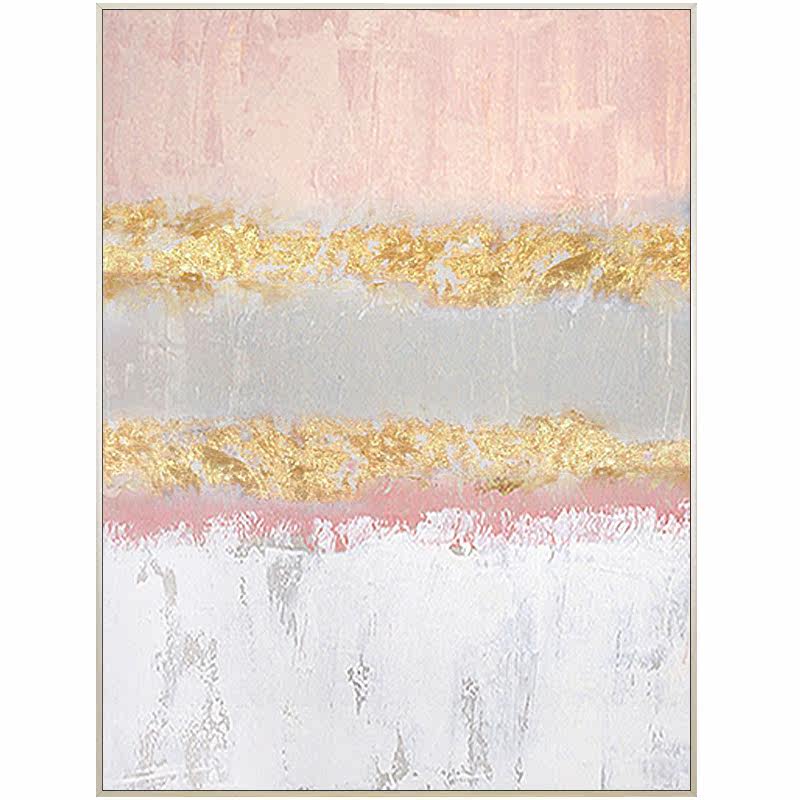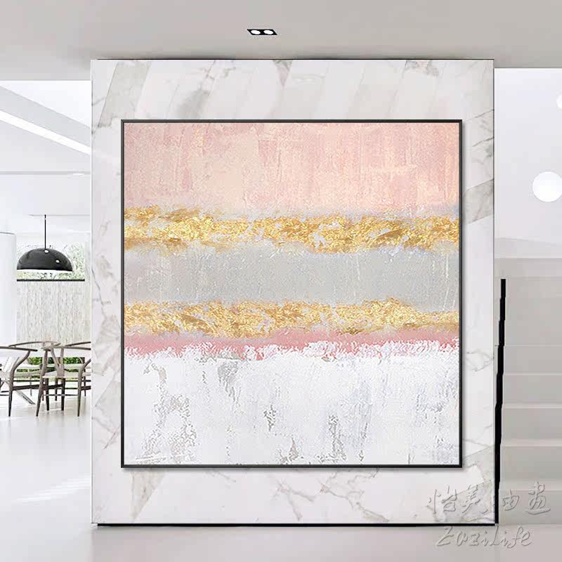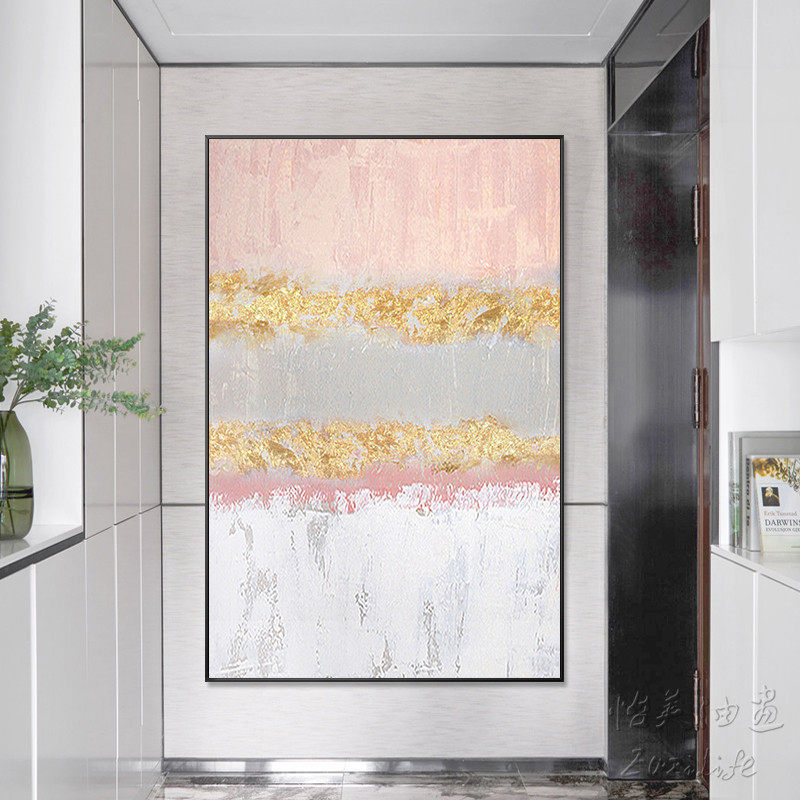 Hand-painted oil painting modern simple Nordic light luxury pink gold foil large villa living room porch decoration mural custom