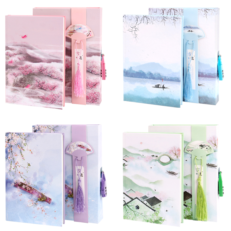 Big character lock book Guyi lock diary girl with lock simple literary color page illustration primary school password hand book antique aesthetic classical Chinese password book retro watercolor book