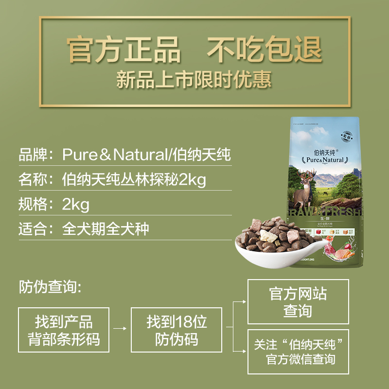 Bernatian pure dog food 2KG small large freeze-dried universal into dog puppies Teddico Kebonne Tianpure-Taobao