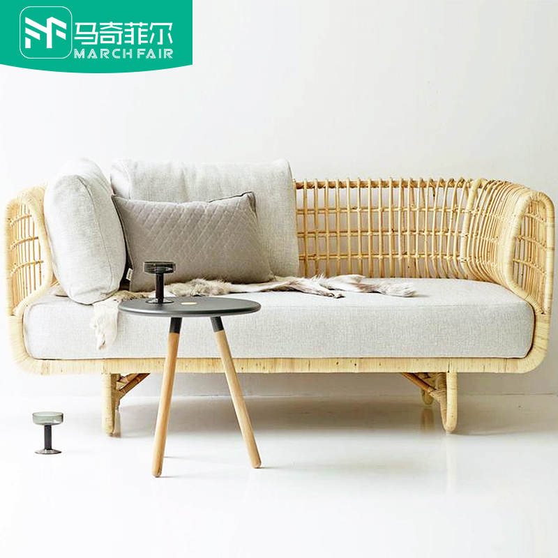 Nordic leisure rattan sofa rattan fabric soft sofa light luxury simple single and double three-person sofa ins furniture
