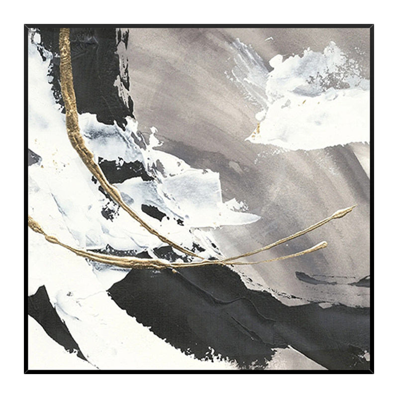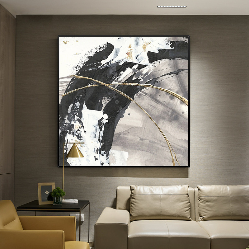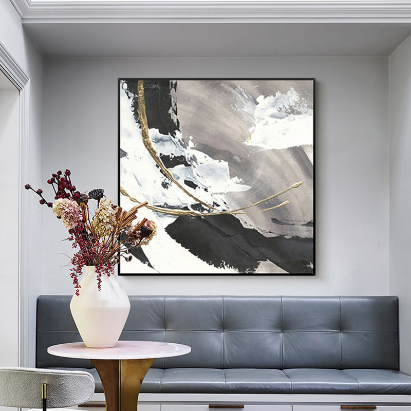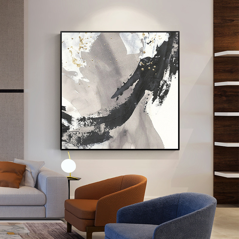 Hand-painted Oil Painting Black & White Wave Square Decoration Painting Modern Minimalist abstract Living room sofa Dining Hall Wall Backdrop Hung Painting