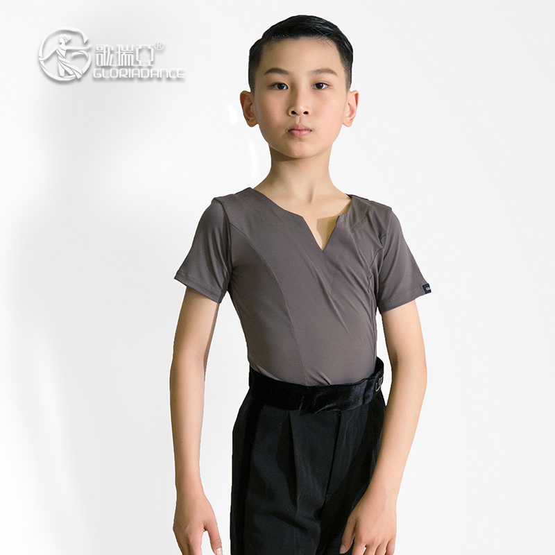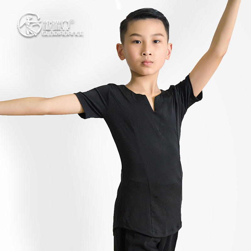 Gloria early childhood dance suit children boy small V collar Latin Morden general practice training short sleeve blouses 5008