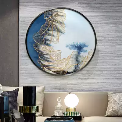 Modern hand-painted oil painting new Chinese porch circular hanging painting living room dining room corridor decorative painting model room with painting