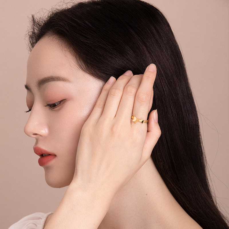 Six Guifu Jewelry Butterfly Gold Ring Foot Gold 999 Ring Living Mouth adjustable for female-denominated