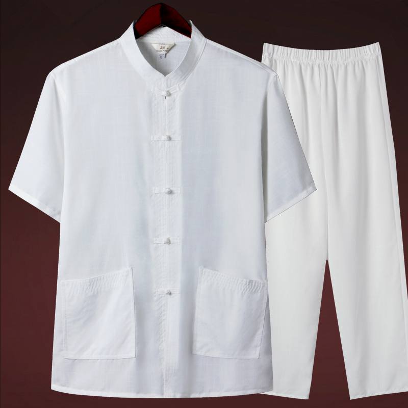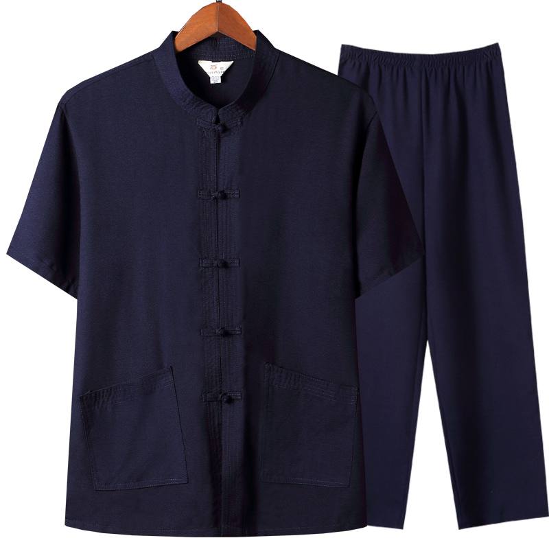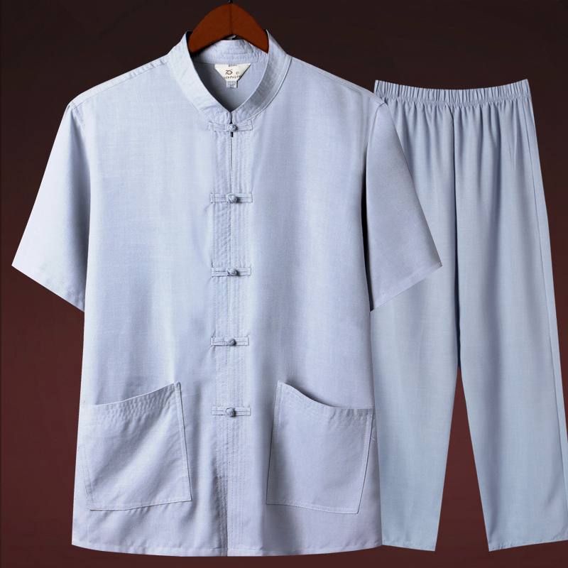 Middle Aged Tang Dress Man Short Sleeve Cotton Linen Suit Dad Hanfu Thin Old Clothes China Wind Grandpa Summer Clothes
