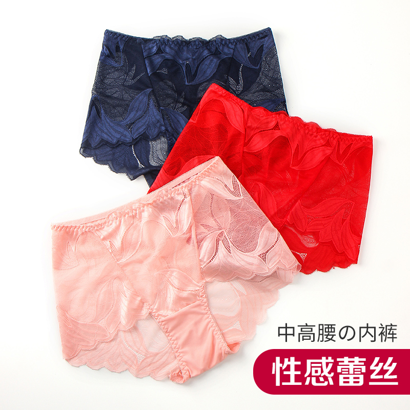 4 panties women's lace mid-waist cotton crotch sexy incognito hips Women's large size briefs women's high waist large size