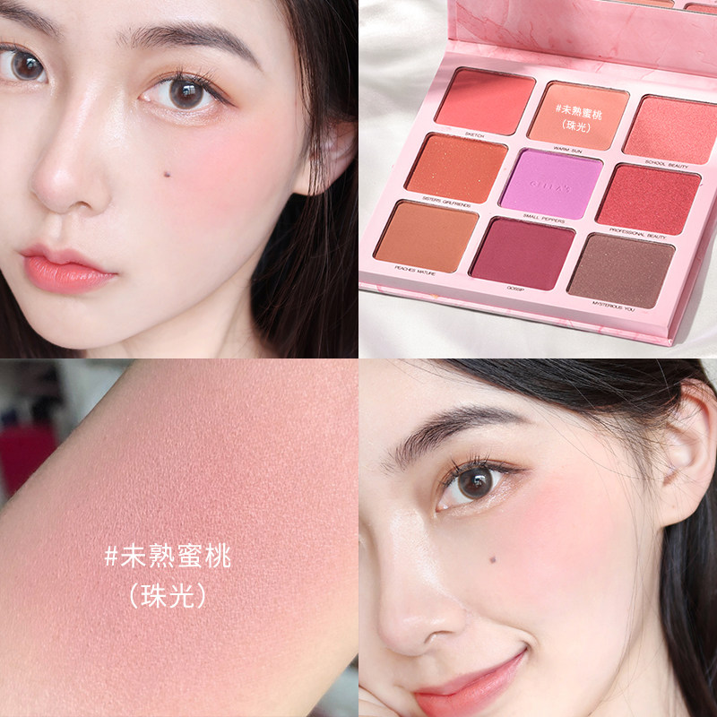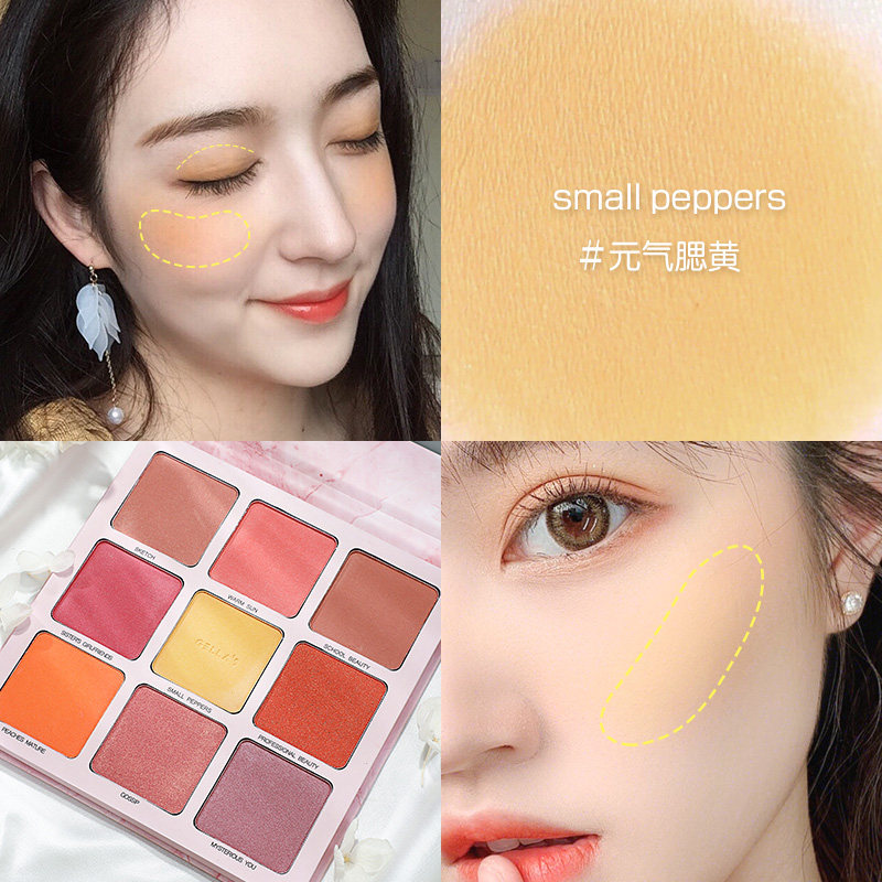 A multi-use nine-color blush lasting natural pearlescent matte mango yellow rose bean paste color girl eyeshadow palette