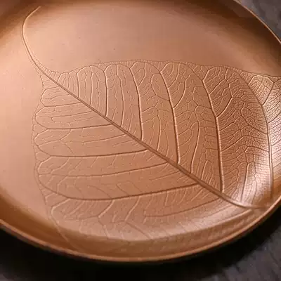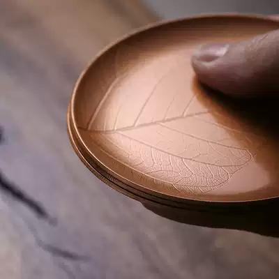One Ji hand-carved red copper tea cup cushion thick insulation tea tray leaf copper cup holder Japanese kung fu tea set zero match