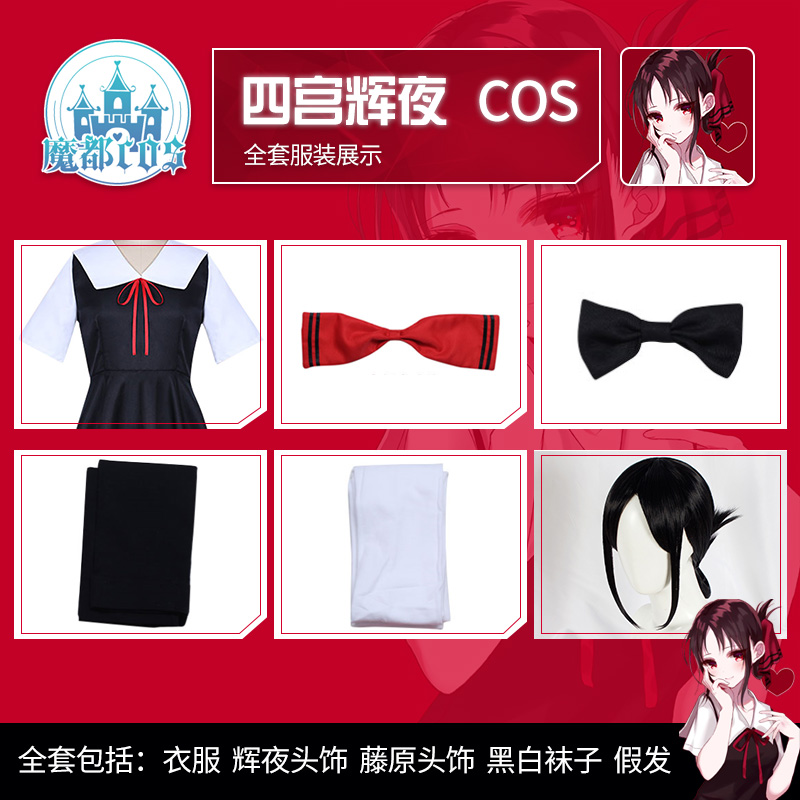Long full set Fujiwara pink wig long full set short full set Kaguya black wig short full set shoes remark size shoes remark size