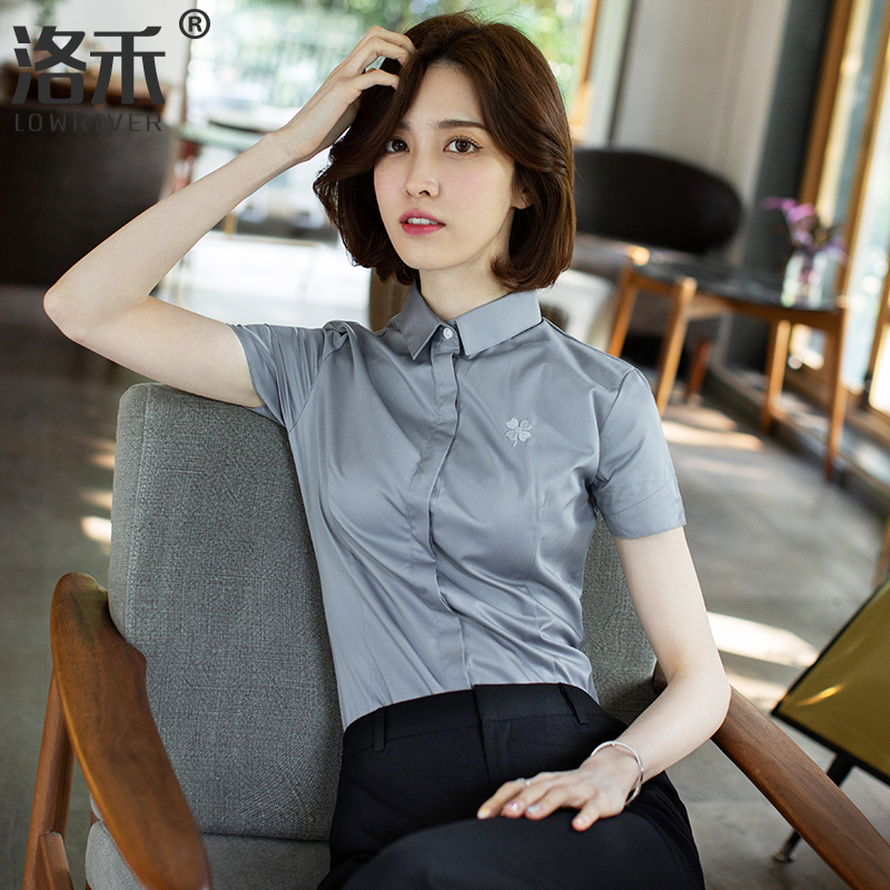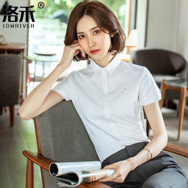 Four-leaf clover embroidered professional white shirt women's short-sleeved design formal overalls 2022 summer new tooling shirt