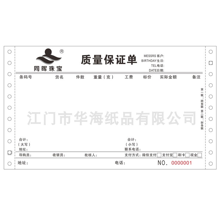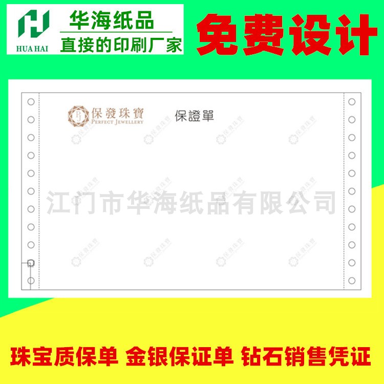 Gold store reputation guarantee single printing jewelry warranty policy customized printing silver building sales settlement receipt shipping Liaoning