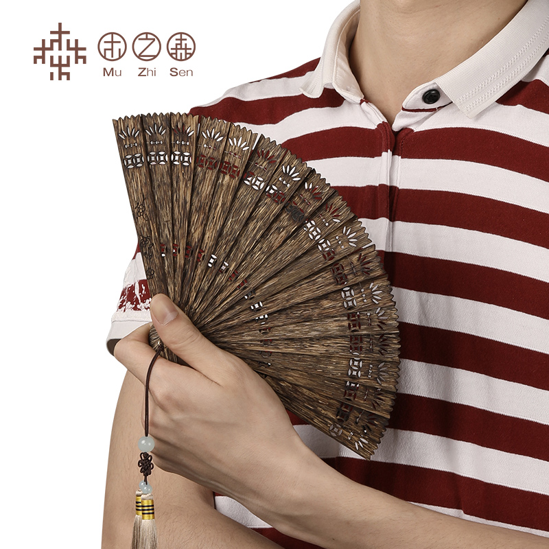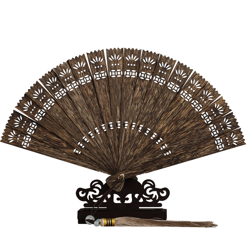 (Carved collectibles)Brunei black oil old material agarwood carved craft fan Home decoration car pendant Cool and sweet