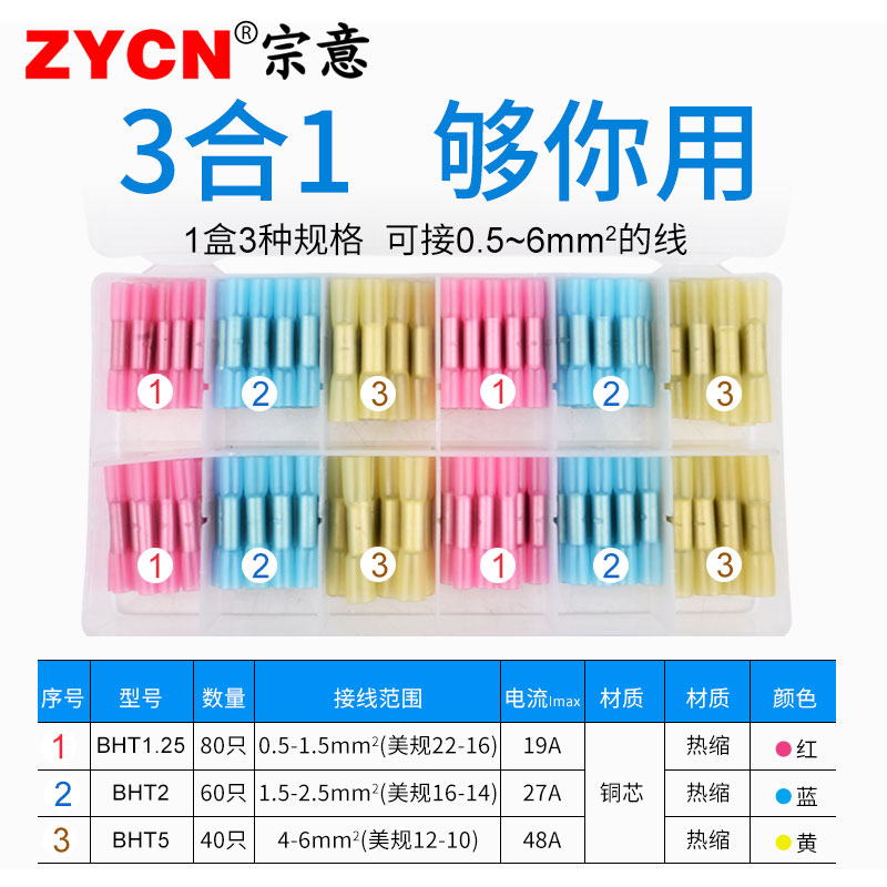 Zongyi BHT set Fully insulated heat shrinkable waterproof middle wire connector Middle connector cold-pressed terminal block