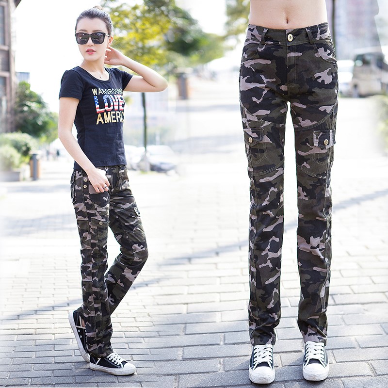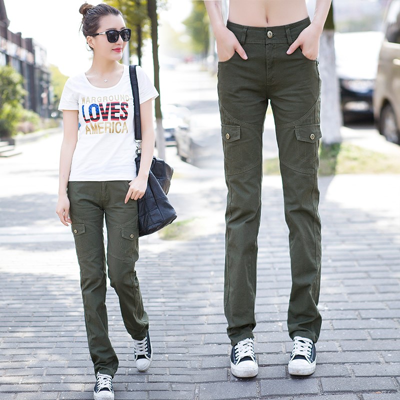 Casual Pants Women Multiple Pockets Sports Fall Long Pants Camouflay Army Green Work Pants High Waist 2022 Spring Autumn Straight Drum Pants