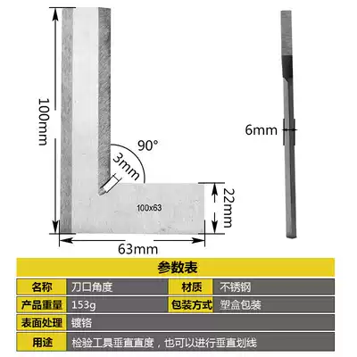 Industrial chrome-plated blade angle ruler blade-shaped straight-angle ruler stainless steel pure 90-degree straight-angle ruler woodworking angle ruler precision