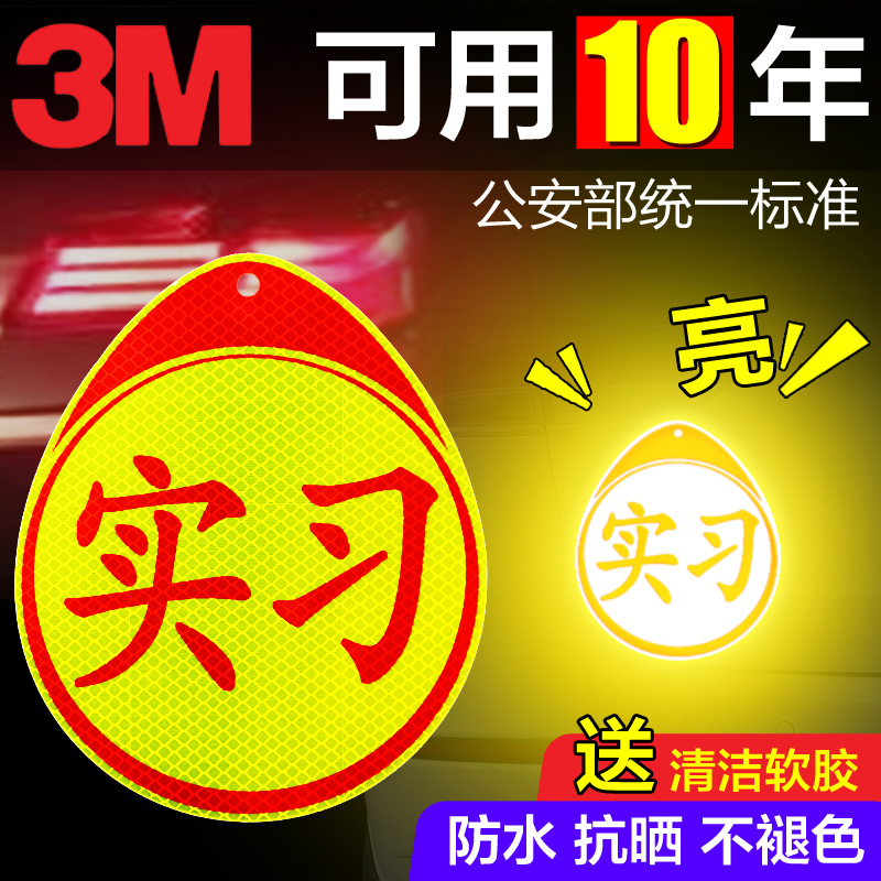 3M practice car stickers magnetic signs novice on the road car stickers Female driver period reflective stickers Luminous creative car
