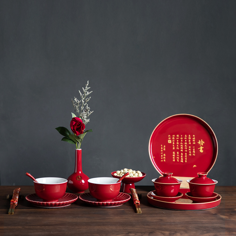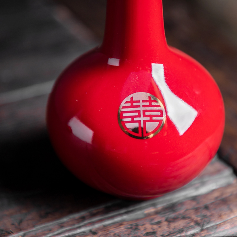 Wedding red ceramic vase Creative wedding flower arrangement Home living room Wedding room flower arrangement decoration Wedding supplies Daquan