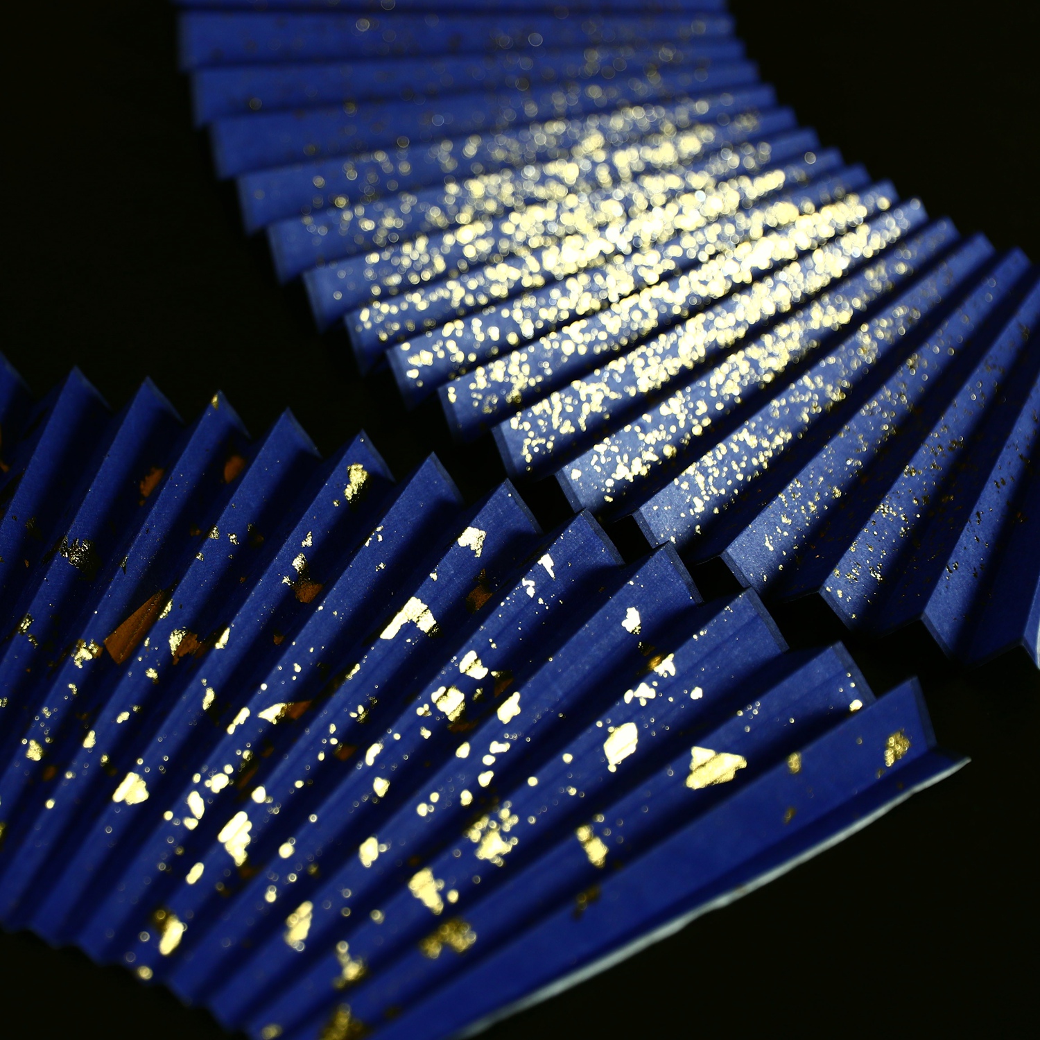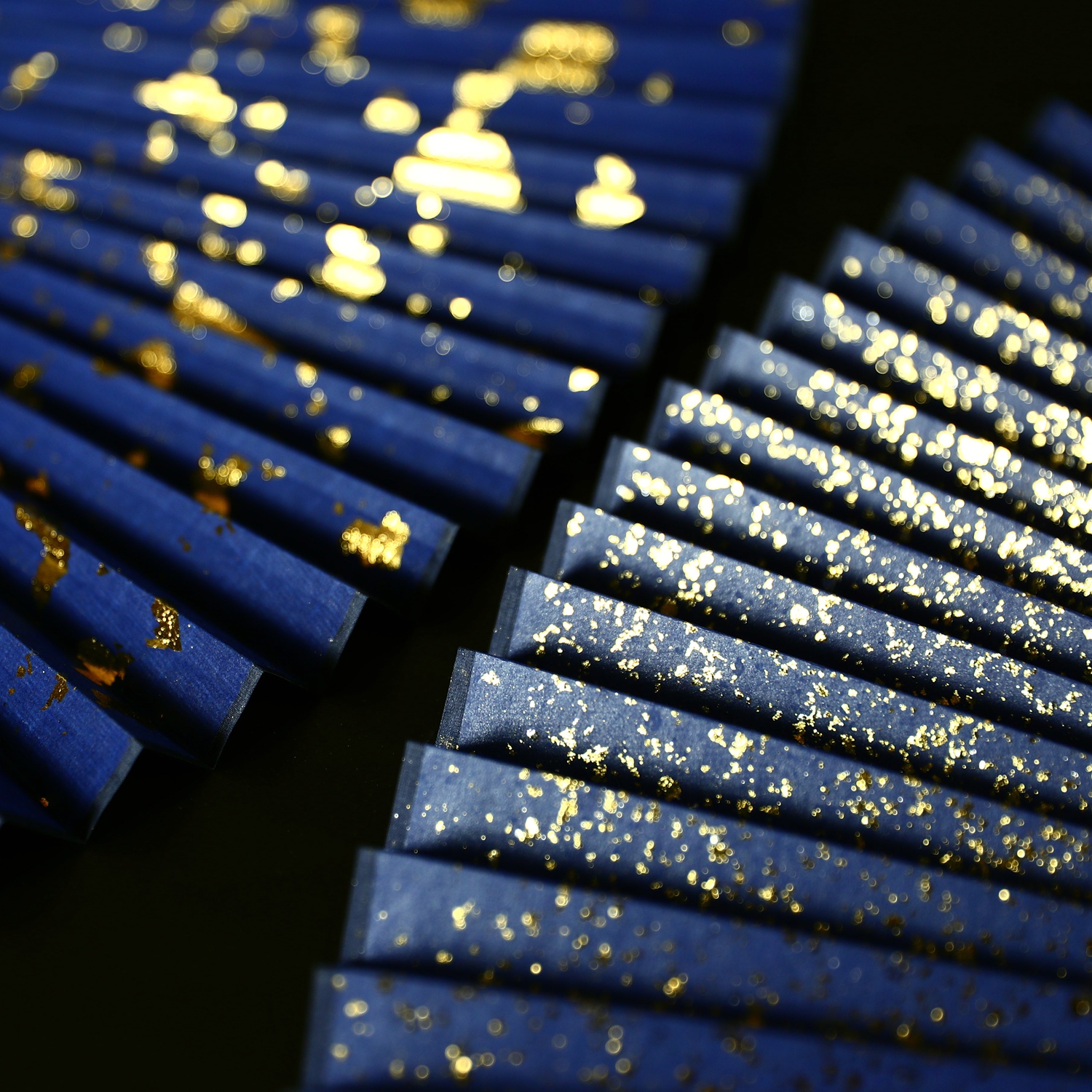 9 5 inch 16 square 18 square indigo Su Gong ultra-thin sprinkled real gold paste gold large piece of gold fish roe gold inscription play folding fan fan