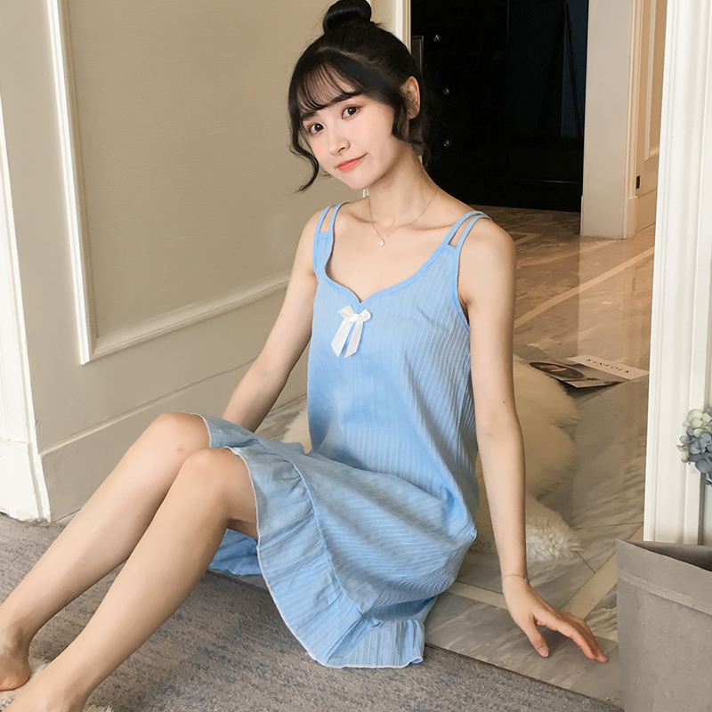Pajamas women's summer Korean version of pure cotton thin fresh cute student V-neck night dress suspender sexy women's home clothes