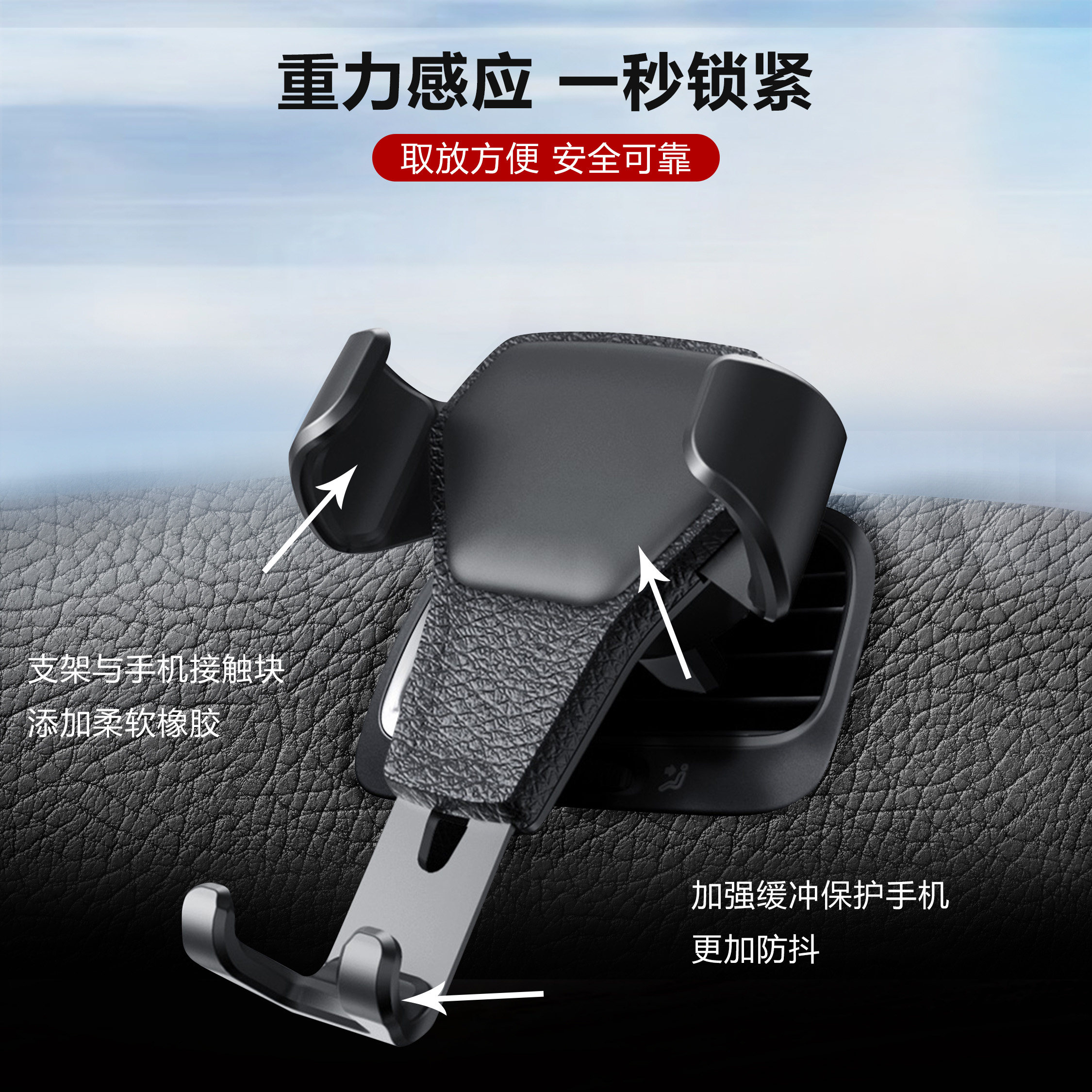 Multi-purpose vehicle gravity air outlet mobile phone frame leather pattern car black white snapback type satellite navigation bracket