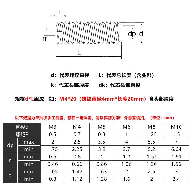 M3M4M5 304 stainless steel word flat end fastening screw slotted headless screw machine rice top wire DIN551