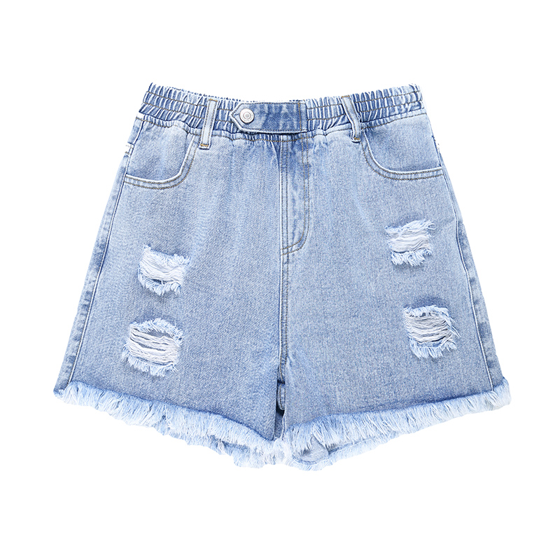 Breaking Hole Cowboy Shorts Woman High Waist 2022 Summer New Loose slim student tightness waist a broad-legged hot pants