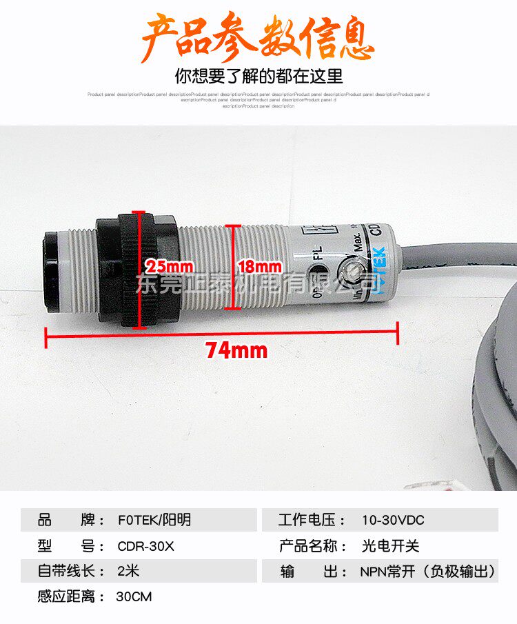 Taiwan FOTEK Yangming cylindrical CDR-30X diffuse reflected light electric switch CDR-10X sensor