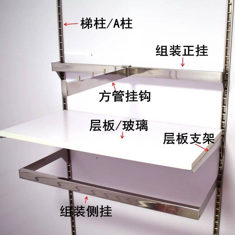 Clothing display stand stainless steel square pipe side hanging wall column hanging rod ladder column hanger A column hanging side hanging