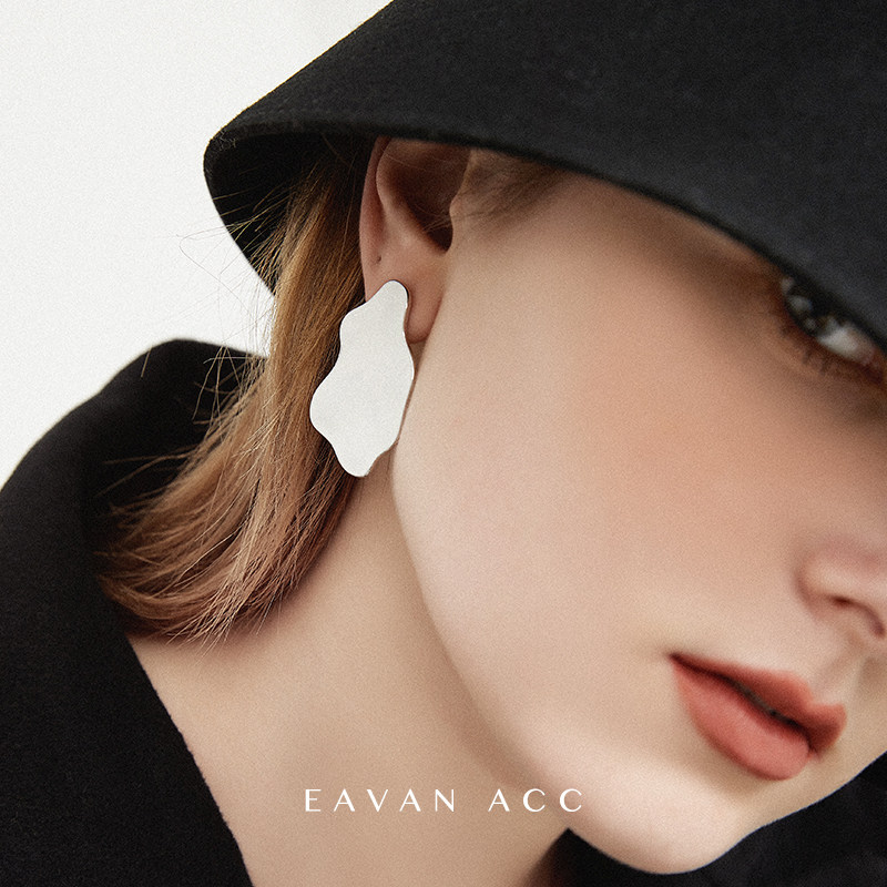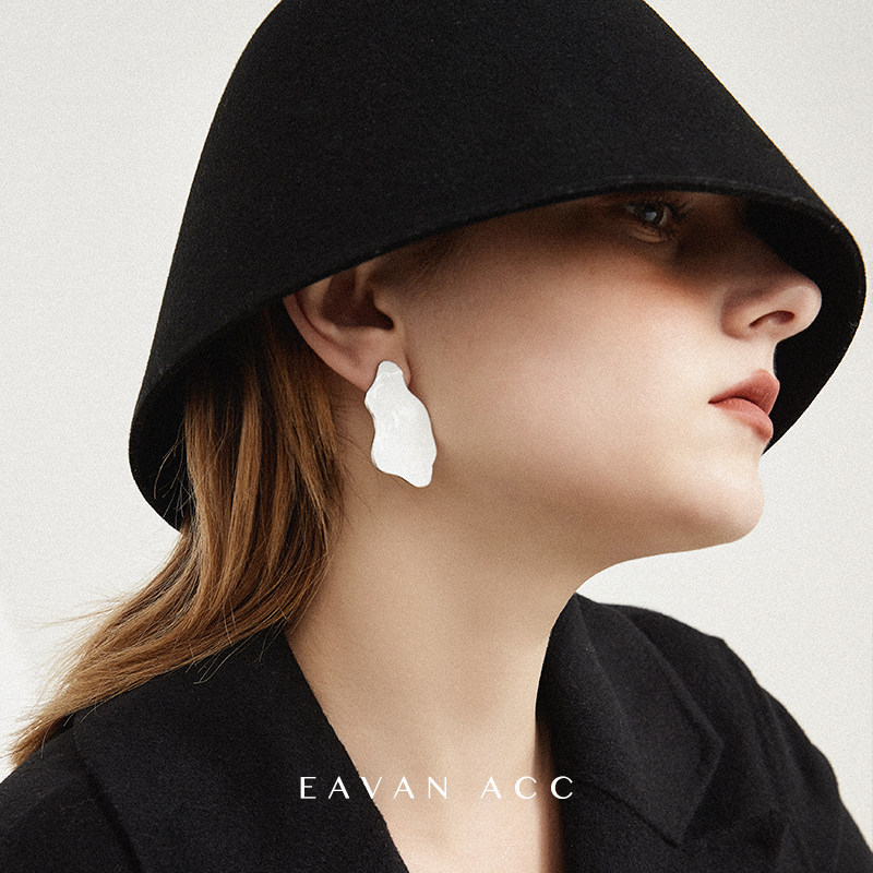 EAVAN ACC White peach wine enamel glaze fashionable asymmetric cold wind no ear hole ear clip designer earrings