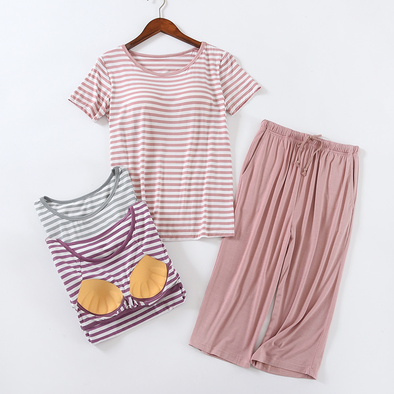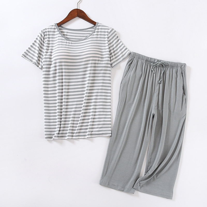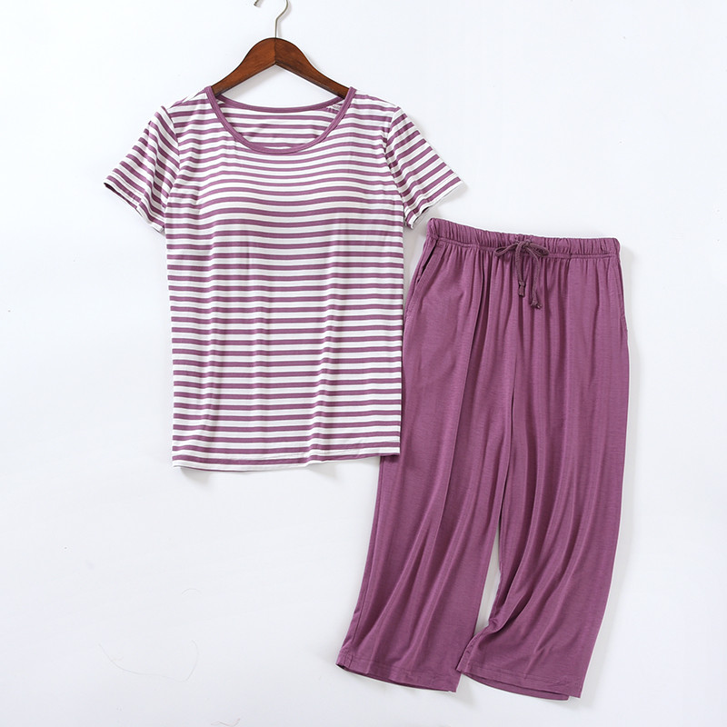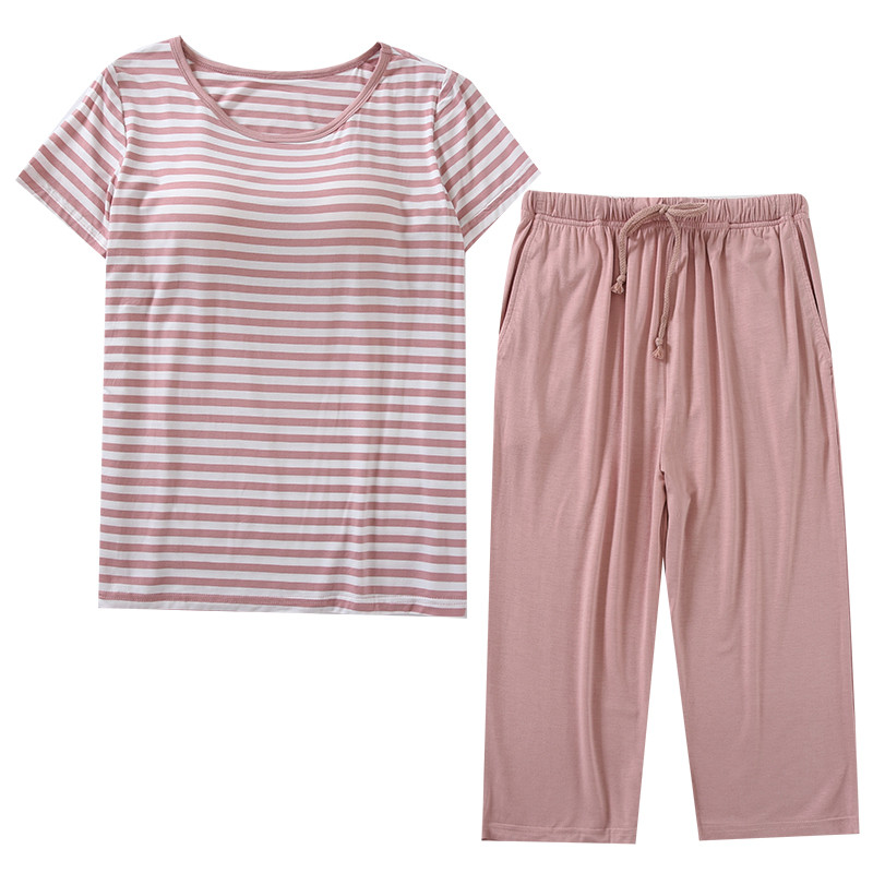 Pajamas women's summer short-sleeved cropped pants two-piece suit modal mid-length pajama pants large size summer thin homewear