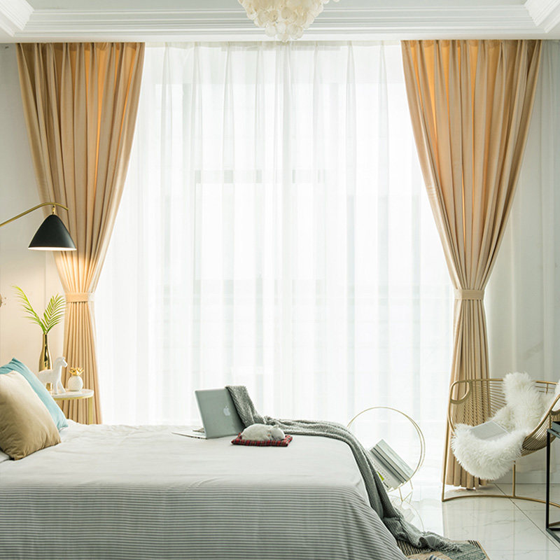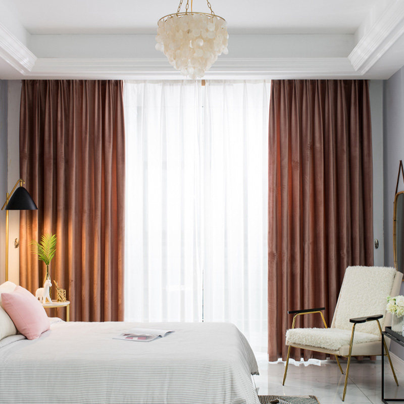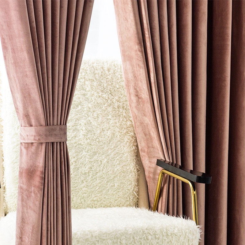 2020 New Nordic Light Lavish Velvet Meat Pink Bedroom Sky Goose Down Cloth Shading Custom Curtain Finished Product Brief
