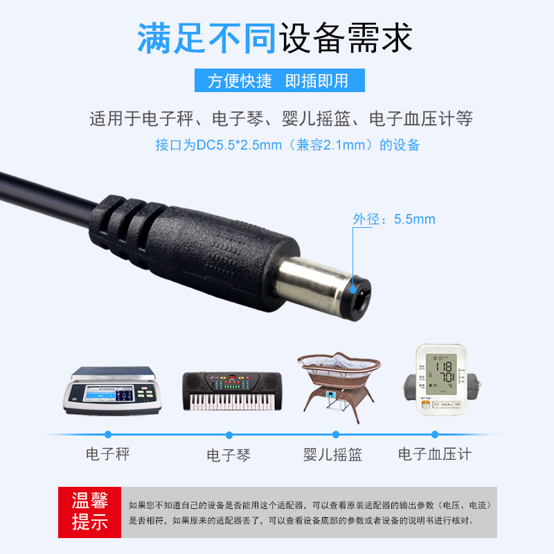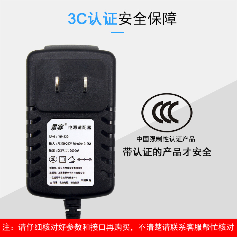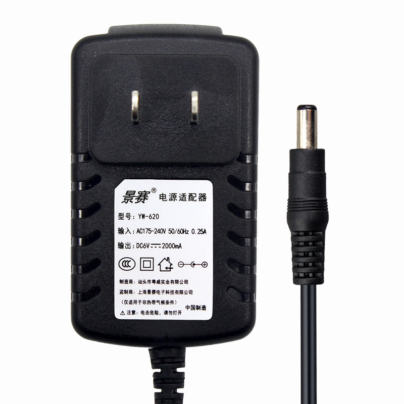 Jingsai 6V2A power supply adapter universal blood pressure measuring meter sphygmomanometer suction miller electronic scale charger reread machine electronic organ electric organ cradle DC switch power cord dc6 volt 2000ma