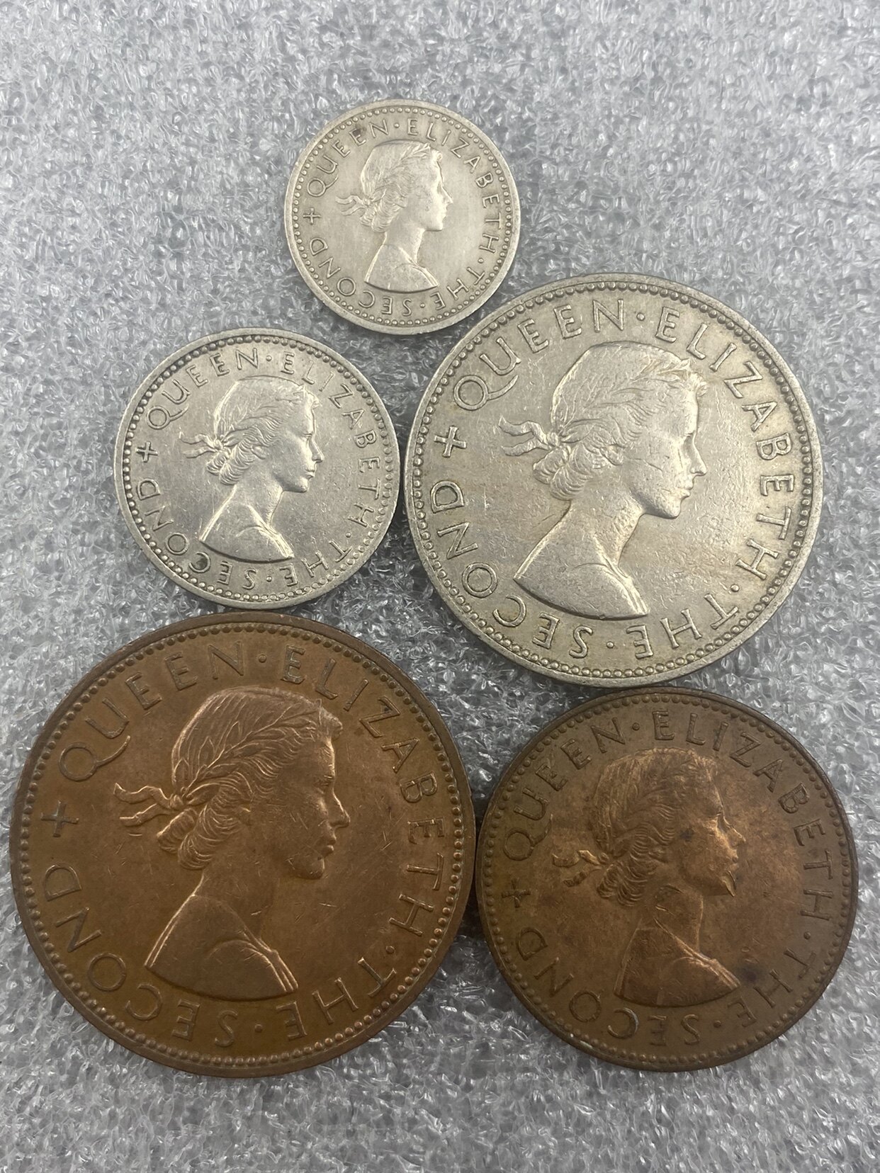 1957 65 New Zealand Elizabeth II old version of 5 sets of copper-nickel coins circulation good coin collection
