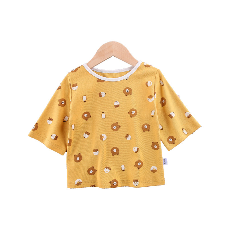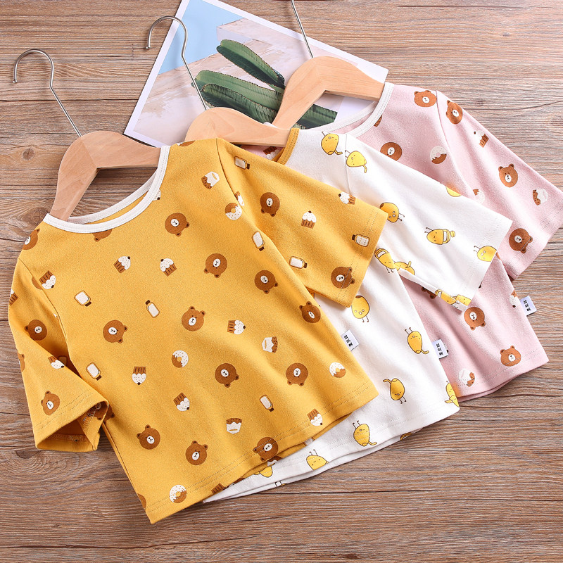Baby sleeve tops T-shirts baby baby baby baby baby pure cotton lingerie single piece of 7-sleeve air conditioning clothesHome pyjamas spring and summer
