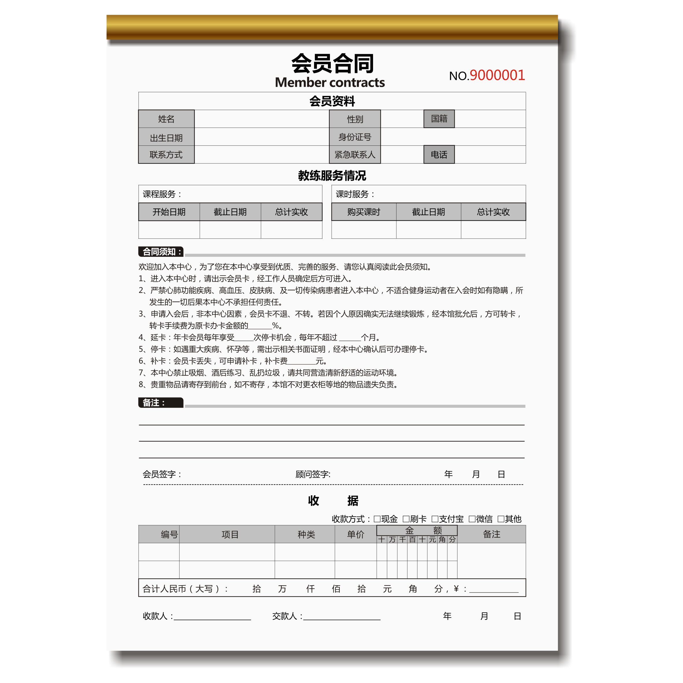 Gym Members Entry Contract Contract Contract Course Confirmation Form Health Questionnaire Receipts