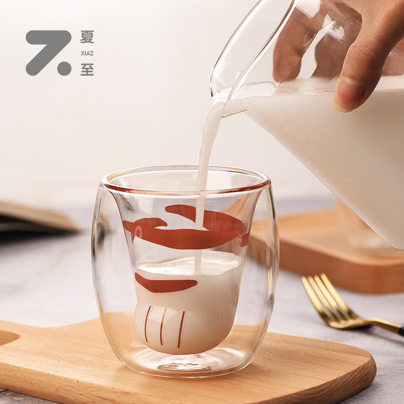 Glass water cup household heat resistant double cute cup children cat claw cup glass ins wind cup tea water separation